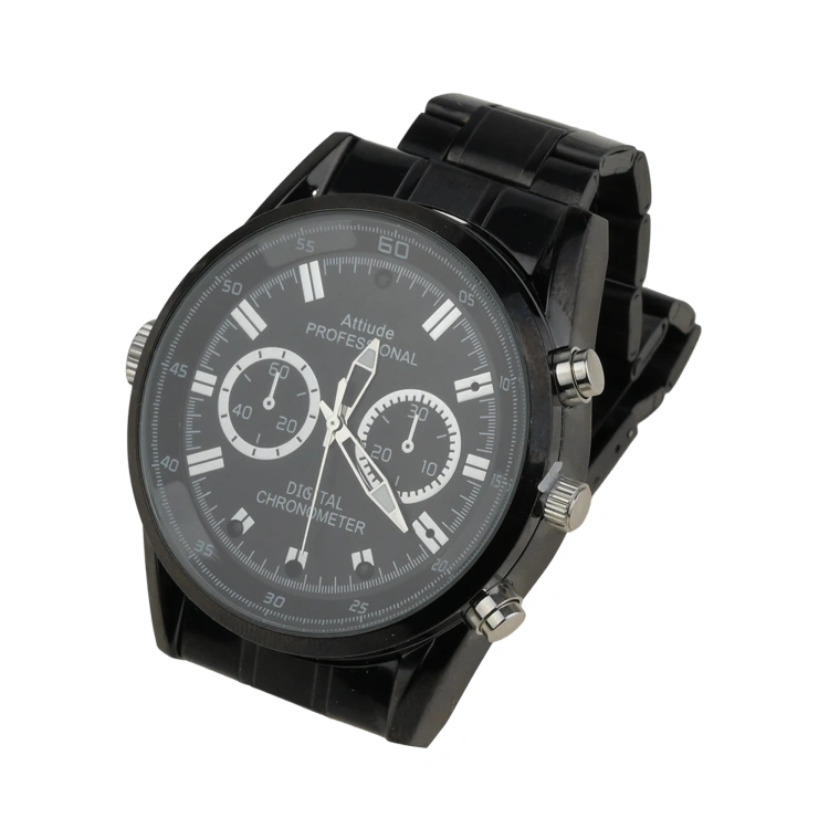 Elegancki zegarek kryje w sobie miniaturową kamerę, która pozwala na dyskretne nagrywanie w jakości FULL HD (1920×1080 px, 30 FPS). Urządzenie jest całkowicie zamaskowane – podczas rejestracji materiału wideo żadna dioda LED nie świeci, dzięki czemu obserwacja pozostaje niewidoczna dla otoczenia.